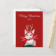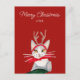 Niedliche Retro Weihnachtsbild mit Katze mit Rentierhairband auf rotem Hintergrund. Original-Kunstwerk von Caroline Bonne Müller