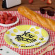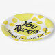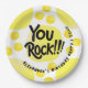Diese lebhaften Teller aus Papier zeichnen sich durch ein lebendiges Design mit gelben Aquarellpunkten auf einem knackigen, weißen Hintergrund aus und verleihen jedem Event eine spielerische und fröhliche Atmosphäre. Der kühne Slogan "You Rock" wird in auffallender, schwarz-pinselbemalter Typografie präsentiert, die den Tellern einen dynamischen, würzigen Flair verleiht. Der moderne Text ergänzt perfekt die helle, lustige Ästhetik und macht diese Teller zu einer stilvollen Ergänzung Ihrer Tischumgebung. Die Rückseite zeigt ein passendes gelbes Punktmuster, das eine zusammenhängende Touch hinzufügt. Außerdem gibt es Platz für einen individuellen Namen und ein individuelles Datum, das eine persönliche Touch bietet. Ideal für Feierlichkeiten, bringen sie eine persönliche, fröhliche und aufregende Atmosphäre!
