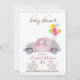Niedlich rosa Auto, Balloons Zigzag Babydusche Einladung