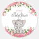 Niedlich rosa Blumendruckerin Elephant Babydusche Runder Aufkleber