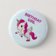 Geburtstagsknopf mit weißem Flügeldraht mit rosa Mähne, Schwanz und Hufen. Das Horn hat Ringe in Regenbogenfarbe und sieht aus wie ein lollipop mit Süßigkeiten. Dieses niedliche Einhorn zieht sich auf den Hinterbeinen auf. Das süße rosa Herz auf der Wange und die langen gürteligen Wimpern.