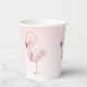 Papiertassen mit einer skurrilen Hand gezeichnet rosa Flamingo.