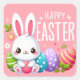 Niedlich, rosa glücklich Osterhase Quadratischer Aufkleber
