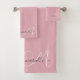 Niedlich-Rosa-Grau-Monogram-Skriptname Elegant Badhandtuch Set