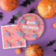 Schönes Halloween-Print mit nahtlosem Muster. Fun Design mit verschiedenen Zeichen in Pastellfarben: Fledermäuse, Spinnen, Kürbis, Gespenster.... wird Sie von der Liebe die! Sehen Sie alle Designs in der Sammlung.