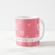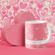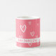 Stilvoll schlendern Sie mit dieser zauberhaften rosa Tasse, die ein zartes weißes Herzmuster und Ihre personalisierte Botschaft aufweist. Sein romantisches Design macht es perfekt für den Valentinstag, Jubiläen oder als nachdenkliches Geschenk für einen besonderen. Ob Kaffee, Tee oder heißer Kakao, diese Tasse bringt eine gemütliche und herzliche Touch zu jedem Schluck.