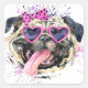 Dieses Design zeichnet sich durch ein niedliches Portrait eines Mops mit einer rosa Herzsonne und einem rosa Bogen in einem prächtigen Aquarellstil aus.