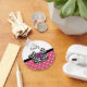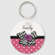 Was Mädchen kann diesem niedlichen Pink-Weiß-Polka-Dot-Schlüsselanhänger widerstehen, mit einem trendigen Schwarz-Weiß-Zickzack Bogen und einer schicken lila Band-Rose. Es ist einfach, dieses rosa und lila Retro trifft auf modernes Design, indem Sie den Namen Ihres Teenagers in den Textvorlagenbereich. Flachdruckbild, KEIN tatsächliches Rosettenband und Bogen.