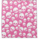 Ein Muster zufälliger Schädel in einem niedlichen Farbschema in Rosa und Weiß.