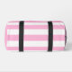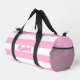 Niedliche gürtelförmige Tasche-Design. Dieses Design zeichnet sich durch Personalisierten Text in modernem Hot-Rosa-Skript und Muster von weißen Streifen auf einem hellrosa Hintergrund aus. Sie können mit einem Vor- oder Nachnamen personalisieren. Diese moderne, gürlich-rosa Duffeltasche wird sich als personalisiertes Geschenk eignen.