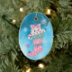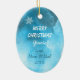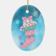 Ein zauberhaftes kleines, weißes Kätzchen flüchtige Blick aus einem rosa Schneeflocken Weihnachtsweihnachtsweih Strumpf. Das Kätzchen trägt einen rosa Bogen und hält einen rot-weiß gestreiften Bonbonstock. Einige Schneeflocken treiben um sich herum. Alles wird auf einem abstrakten, eisblauen Hintergrund platziert. Die Rückseite des Ornaments hat den gleichen Hintergrund, ein paar Schneeflocken, und Ihren eigenen Text in fünf Feldern. Leicht zu anpassen, und jedes kleine Mädchen würde diese Keepsake-Ornament Liebe!