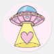 Grüße, Erdlinge! Planen Sie mit diesem Niedlichen rosa UFO Round Sticker einen Geburtstag zum Thema Alien aus der Welt. Das Design zeigt eine digitale Abbildung eines rosa und lila UFO, das ein rosa Herz aufbläht. Es ist perfekt für ein Party, das den Liebhaber des Raumschiffs in Ihrem Leben feiert.