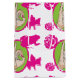 Rosa grüne Vorlage für Monogramm. Niedliche rosa und grüne Illustration von rosafarbenen, hübschen Perlen, niedlichem Frosch und Efeu. Niedlich.