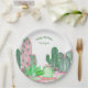 Niedlich-rosa und grüne Wasserfarbenkaktus Geburts Pappteller