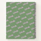 Dieses niedliche Notizbuch zeichnet sich durch ein farbenfrohes Namensmuster in modernen, kursiven Schriften in Rosa und Grün aus.