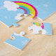 Fügen Sie der Spielsammlung Ihres kleinen Mädchens eine persönliche Touch mit diesem niedlichen, farbenfrohen Einhorn-Puzzle hinzu. Puzzle hat ein rosa Einhorn, lila Einhorn, und zwei weiße Einhorn. Im Hintergrund sind schöne Regenbögen und Wolken. Fügen Sie den Namen Ihres Kindes unten für eine persönliche Touch hinzu.