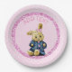 Niedliche rosa Vintage Kaninchen Party Papier Teller. Nur den Text im Bereich anpassen personalisiert.