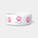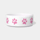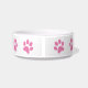 Diese niedliche Schüssel hat ein einfaches rosa Pfotenmuster (die Farbe ist anpassbar) mit einem eigenen Haustiernamen in grauem Schriftart. Ändern Sie die Farben und den Stil des Schriftartes, indem Sie auf Personalisieren klicken und dann weiter anpassen.