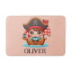 Personalisierter, niedlicher Cartoon-Pirat auf einem Piratenschiff mit weicher rosa Badematte