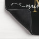 Niedliche Schwarz-Gold-Script Typografie Monogram Maus Pad. Ein elegantes Goldmonogramm mit einem niedlichen, weißen, dekorativen personalisierten Namen mit botanischen Swashes.