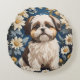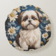 Niedlich Shih Tzu Dog White Daisy Blume Rundes Kissen