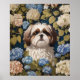 Niedlich Shih Tzu Puppy Blue Hydrangea Blume Poster