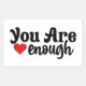 Niedlich sind Sie genug Typografie mit rotem Herze Rechteckiger Aufkleber