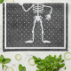 Fügen Sie der Küche eine lustige saisonale Touch mit diesem Halloween-Küchentuch hinzu. Erschaffen mit einem schwarzen, gepunkteten Hintergrund, kleinen Geistern und einem niedlichen Skelett, das einen Gruß schwingt. Bearbeiten Sie den Text, falls gewünscht und fertig.
