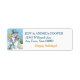 Auf diesem Adressetikett hat ein glücklicher Schneemann mehrere Freunde, die zu Besuch gekommen sind, darunter ein Rot-Kardinal, ein Eichhörnchen, ein Hasen und sogar einen Schnupfen! Ein kleiner Vogel steht auf seinem Besen. Ein hübscher, wirbelnder Himmelshintergrund rundet das einzigartige Retro-Urlaubsmoment ab. Der anpassbare Goldtext unten sagt "Happy Holidays!" Stellen Sie sicher, dass Sie die passenden Karten in unserem Shop sehen.