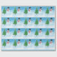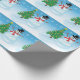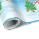 Niedlicher Schneemann mit Weihnachtsbaum und Schneeflocken.