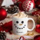 Super niedliche Weihnachtsfeier mit zwei Tönen Tasse mit einem glücklichen Schneemann vorne! Einfach zu anpassen; macht ein großartiges Geschenk für einen Freund oder für sich selbst!