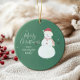 Fügen Sie Ihren Urlaubsgeschenke eine fröhliche Touch mit diesem festlichen Snowman-Design hinzu. Mit einem von Hand gezeichnet Schneemann in roter Weihnachtsmannmütze und gestreiftem Schal auf tiefgrünem Hintergrund verleiht dieser Anhänger Ihrem Weihnachtsfest einen herzlichen, familienfreundlichen Charme. Personalisieren Sie mit Ihrem Familiennamen oder Ihrer Nachricht, damit jedes Geschenk ein besonderes Gefühl hat.