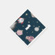 Papierservietten zum Thema Außenraum für die erste Geburtstagsfeier Ihres Kindes. Die Abbildung enthält einige rosa und lila Planeten, Sterne und Raketen. Die Abbildung sieht dreidimensional aus, aber es ist nur ein Druck. Illustriert und entworfen von Patricia Alvarez.