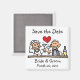 Funny Save the Date Magnete mit niedlichen Cartoon Strichmännchen einer Braut und Bräutigam Toasting ihrer Hochzeit! Passen Sie mit den Namen der Braut & Bräutigam, und dem Hochzeitstag in dem Raum zur Verfügung gestellt.