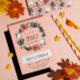 Niedliche Halloween-Geburtstagsfeier mit einem geilen Halloween-Kranz mit Kürbis, Katzen, Gespenstern, Schädeln, Toaststühlen, Fledermäusen und Herbstblättern vor einem üppigen Hintergrund.