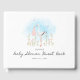 Baby Shower Gästebuch mit einem niedlichen Aquarellstorch mit einem rosa Freudenbündel.