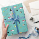 Dieses skurrile Verpackungspapier zeichnet sich durch einen leichten aquamarinen Hintergrund aus und zeigt ein Set von Sushi (Nigiri und Maki) und Sushi-Beilagen (Stäbchen, Sojasauce und Wespabi). Perfektes Verpackungspapier, um Ihren Freunden und der Familie, die Sushi und japanisches Essen Liebe geben, Geschenke zu geben und Sushi-ähnliche Geschenke zu verpacken.