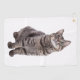 Eine hübsche, graugestreifte, häusliche Kurzhaarkatze, die auf einem weißen Hintergrund ausgeschnitten ist