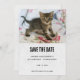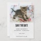 Save the Date Karte mit einem lustigen Foto einer Tabby-Katze. Das Haar auf dem Rücken leicht erhöht und er hat einen überraschenden Gesichtsausdruck. Niedlich und bezaubernd. Lächelt dich. :