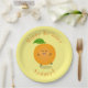 Niedlich tanzende Orangenzitrusfrüchte Pappteller