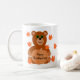 Niedlicher Teddybär Happy Thanksgiving Kürbis Blätter Kaffee Tasse.
