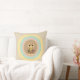 Modekissen mit niedlicher Tigerkatze aus bunten Pastellkreisen auf beigem Hintergrund.