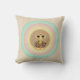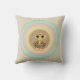 Modekissen mit niedlicher Tigerkatze und bunt pastellfarbene Kreise auf beigem Hintergrund.
