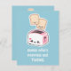 Super niedlicher Toaster mit glücklich fliegenden Toastzwillingen. Personalisieren Sie die Vorder- und Rückseite mit Ihren Party-Details.