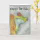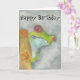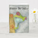 Freundlich und niedlich! Heller grüner Baumfrosch, der sich hinter einem Stumpf den Kopf herausstößt. Der hellgraue, texturierte Hintergrund schafft eine sumpfige Atmosphäre. Geschehen in traditioneller Wasserfarbe. Herzlichen Glückwunsch Geburtstagskarte mit einer schönen Nachricht innen.