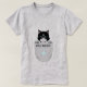 Fashion T -Shirt mit niedlichem Tuxedo Katzengürtel aus einer Tasche. Dieser Cartoon wurde von einer geretteten Katze namens Rony inspiriert. Tuxedo Katzen gehören zu den intelligentesten Katzen.