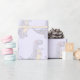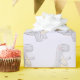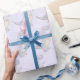 Umschlagpapier mit einer niedlichen Abbildung mit einem grauen lila Dinosaurier.