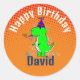 Niedlich zorniger Cartoon T-Rex Dino! Originelles Cartoon-Design. Rawr! Geburtstagsaufkleber für Kinder. Bearbeiten Sie den Namen, um diesen Aufkleber personalisiert zu machen. Gut geeignet für Geschenkverpackungen, Party-Dekoration und Etikettierung.