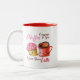 Niedliche, kawaii rosa Kuchen und rotes Kaffee Tasse Paar mit anpassbarem Text auf der Vorderseite: "Muffin Compares to You" und "I Liebe You a Latte". Großes Motiv für Ihren Liebsten für Valentinstag.