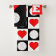 Ein niedliches dreiteiliges Handtuchhandtuch-Set für Volleyballfans. Mit drei Kissen - eines mit karierten Volleybälle- und Herzmustern, eines mit vertikalem "I Heart Volleyball" Design und eines mit quadratischem Volleyball-LIEBE typografisches Design. Alle mit den passenden Farben rot, weiß und schwarz. Diese machen eine lustige und nützliche Geschenkidee für Volleyballfans jeden Alters!